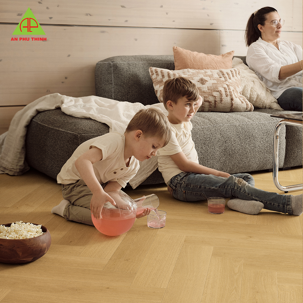 Khi sử dụng nên đặt thảm chân cửa và miếng chống trầy dưới chân bàn ghế để giữ sàn luôn mới.