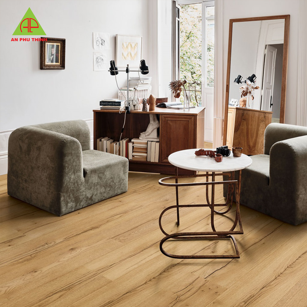 Khi sử dụng nên đặt thảm chân cửa và miếng chống trầy dưới chân bàn ghế để giữ sàn luôn mới.