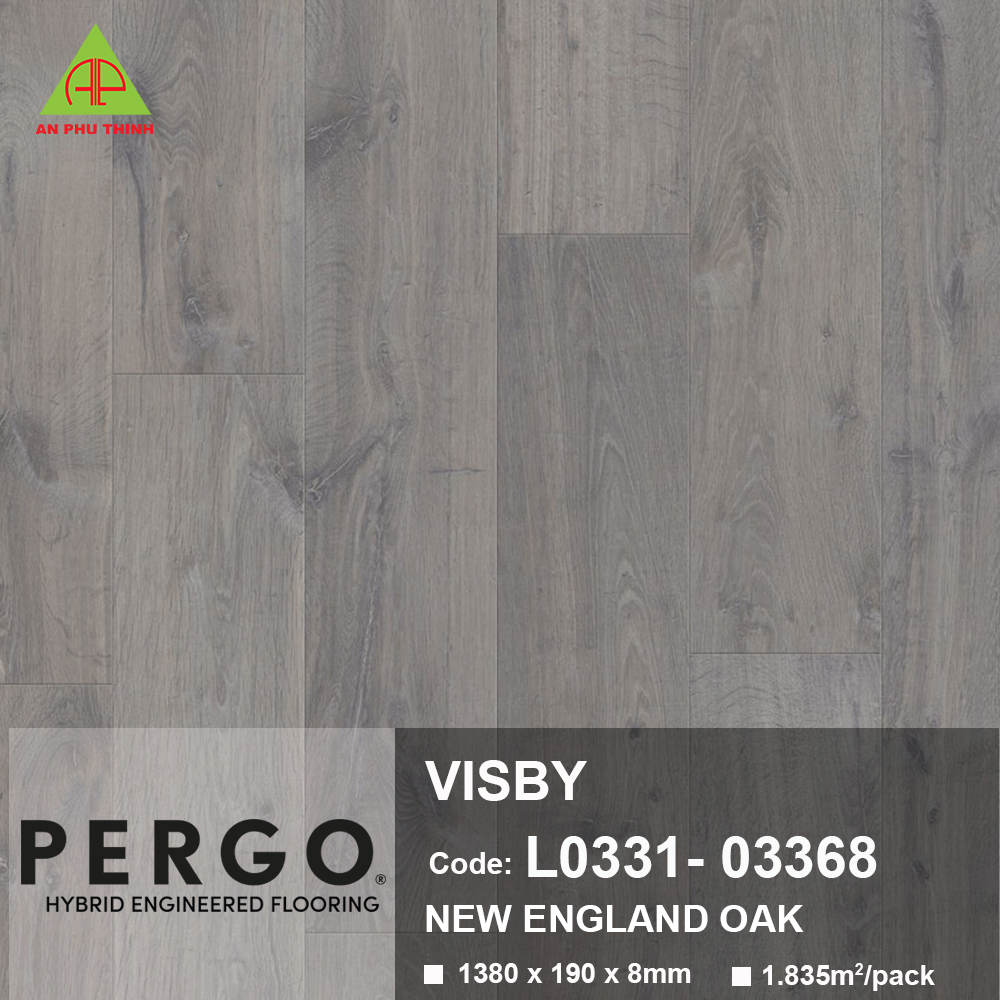 SÀN GỖ PERGO VISBY 03368 với các thanh ván kích thước trung bình mang đến vẻ hoàn thiện tự nhiên, chân thực cho bất kỳ căn phòng nào trong ngôi nhà bạn. Hèm vát 4 cạnh nổi bật tăng cường vẻ ngoài chân thực của từng tấm ván. Sự đa dạng về mẫu mã đảm bảo có một lựa chọn hoàn hảo cho ngôi nhà bạn. Visby thuộc dòng sàn Sensation, có nghĩa là nó sở hữu cấu trúc vân bề mặt sâu, siêu chân thực và lớp hoàn thiện mờ tinh xảo. Lớp bề mặt bảo vệ TitanX™ mang lại khả năng chống trầy xước và chống mài mòn cao cho sàn, và nhờ công nghệ AquaSafe, sàn có khả năng chống nước giúp bạn an tâm sử dụng. Visby cũng rất nhanh chóng và dễ dàng lắp đặt với hệ thống hèm khóa PerfectFold™.