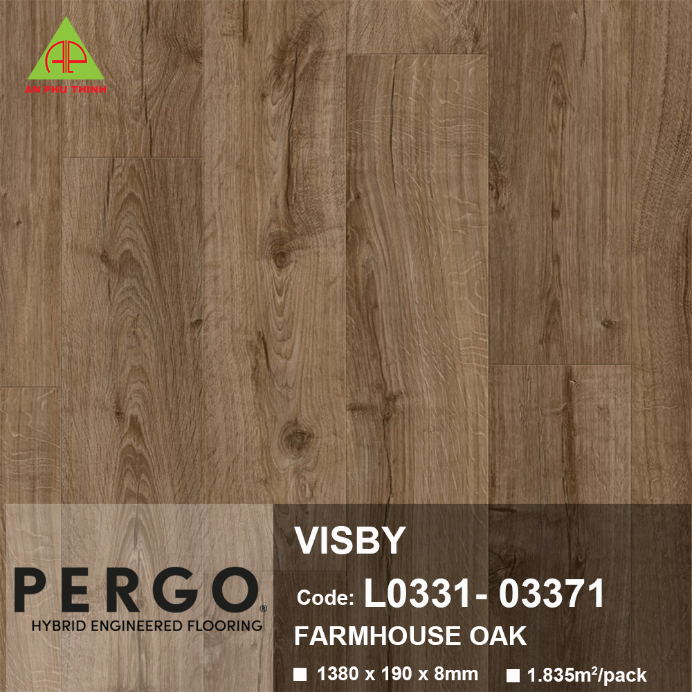 SÀN GỖ PERGO VISBY 03371 với các thanh ván kích thước trung bình mang đến vẻ hoàn thiện tự nhiên, chân thực cho bất kỳ căn phòng nào trong ngôi nhà bạn. Hèm vát 4 cạnh nổi bật tăng cường vẻ ngoài chân thực của từng tấm ván. Sự đa dạng về mẫu mã đảm bảo có một lựa chọn hoàn hảo cho ngôi nhà bạn. Visby thuộc dòng sàn Sensation, có nghĩa là nó sở hữu cấu trúc vân bề mặt sâu, siêu chân thực và lớp hoàn thiện mờ tinh xảo. Lớp bề mặt bảo vệ TitanX™ mang lại khả năng chống trầy xước và chống mài mòn cao cho sàn, và nhờ công nghệ AquaSafe, sàn có khả năng chống nước giúp bạn an tâm sử dụng. Visby cũng rất nhanh chóng và dễ dàng lắp đặt với hệ thống hèm khóa PerfectFold™.