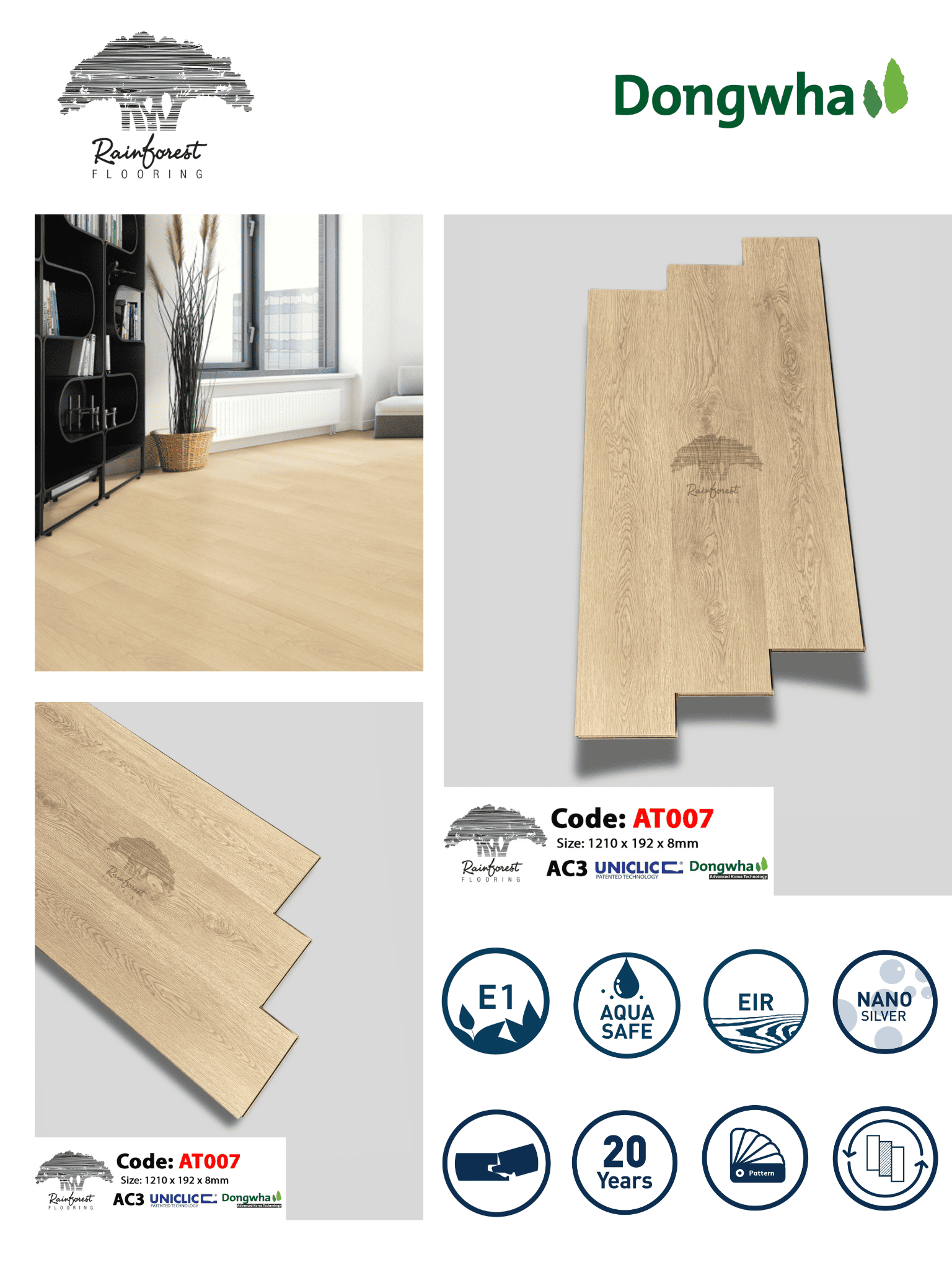 Kích thước sàn gỗ Sàn Gỗ Rainforest AT007
